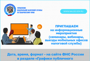 Среди них вебинары на площадках «Мой бизнес», «КонсультантПлюс», «СБИС», мобильные офисы налоговой службы и семинары в городах и районах Хабаровского края. Мероприятия проводятся специалистами службы на безвозмездной основе, и посетить их может любой желающий.